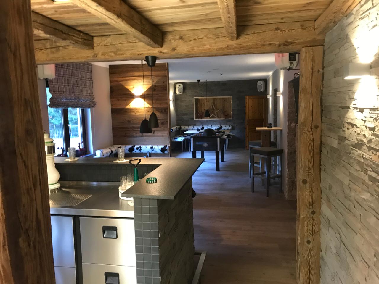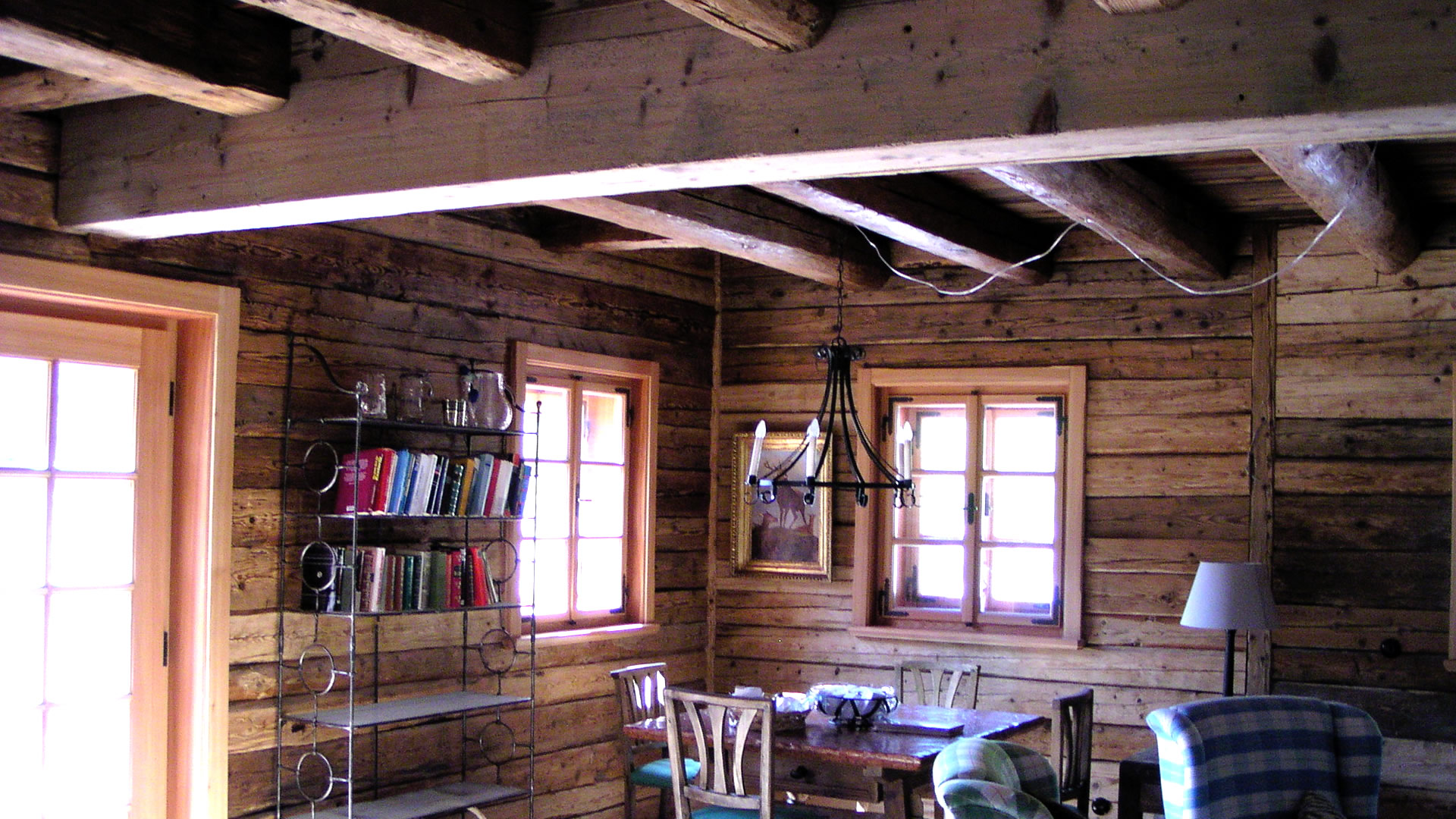 - Decken: Sichtbare Deckenbalken oder eine komplette Altholz-Deckenverkleidung schaffen Geborgenheit und ein nostalgisches „Chalet-Feeling“.