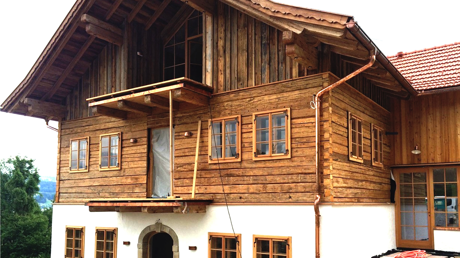 In der modernen Architektur dient Altholz als organischer Kontrast zu klaren Linien. Historisches Sichtgebälk, tragende Stützpfeiler oder markante Dübelbäume strukturieren offene Wohnkonzepte und verleihen Neubauten eine sofortige Tiefe und Beständigkeit.